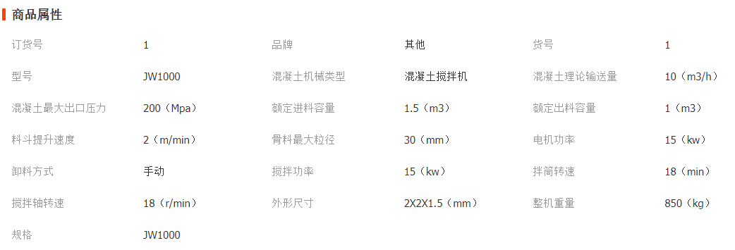 JW平口混凝土攪拌機主要參數(shù):