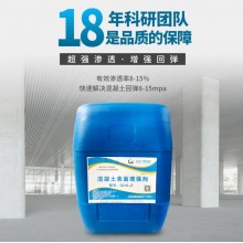 GUX-Z混凝土表面增強(qiáng)劑具有極低的表面張力,能快速滲透至混凝土內(nèi)部,與混凝土中水泥水化的副產(chǎn)物如氫氧化鈣發(fā)生二次反應(yīng),生成大量的二氧化硅凝膠,這些凝膠能堵塞混凝土內(nèi)部毛細(xì)微孔,從而增加混凝土表面的密實(shí)性,抗壓強(qiáng)度,硬度和耐磨性,一般能提高混凝土強(qiáng)度的15-30。